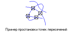 Для вызова команды нажмите кнопку Точки пересечений двух кривых на инструментальной панели Геометрия.