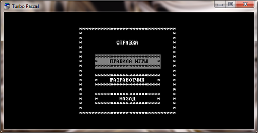 "Правила игры", "Разработчик" и "Назад". выбирая каждую вкладку, на экране должна будет появиться соответствующая информация.