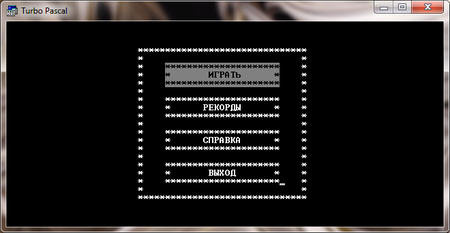 При запуске программы появилось главное меню со вкладками "Играть", "Рекорды", "Справка", "Выход" (Рис.8.1).
