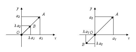 Поэтому, если λ > 0, то точка B лежит на луче OA, а следовательно, векторы a и λa одинаково направлены. Если λ < 0, то точка B лежит на дополнительном луче и векторы a и λa противоположно направлены.