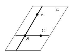 Допустим, существует другая, плоскость α.`, проходящая через прямую AB и точку С. По аксиоме о том, что если две различные плоскости имеют общую точку, то они пересекаются по прямой, проходящей через эту точку, плоскости α и α` пересекаются по прямой. Эта прямая должна содержать точки A, B, C. Но они не лежат на одной прямой. Что противоречит предположению. Теорема доказана.