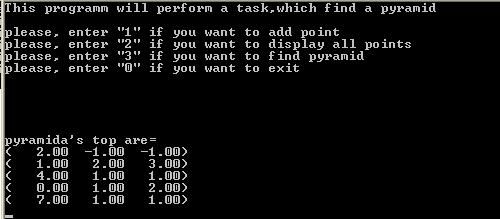 (вычисление вершин пирамиды с выпуклым основанием и вывод их на дисплей)