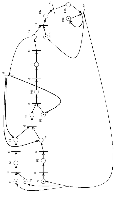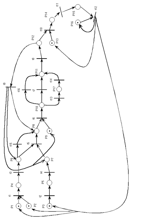 Рис. 3 Сеть Петри с конфликтными ситуациями.