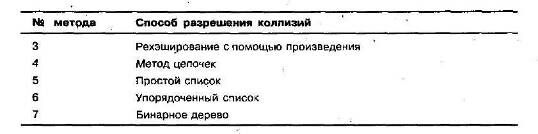 В этом случае при совпадении значений хэш-функции для каких-либо элементов поиск свободной ячейки в таблице начинается последовательно от текущей позиции, заданной хэш-функцией