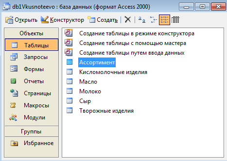 С помощью конструктора создадим 6 таблиц (рис.3).