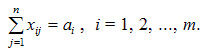 Система ограничений задачи состоит из двух групп уравнений. Первая группа из m уравнений описывает тот факт, что запасы всех m поставщиков вывозятся полностью и имеет вид: