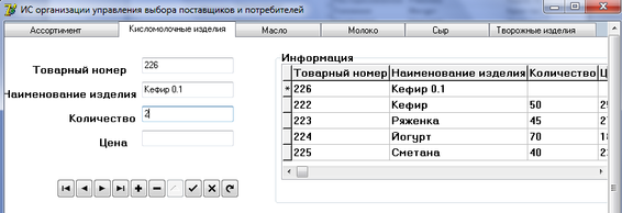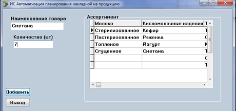После нажатия на кнопку Вход программа проанализирует введенные данные, а затем предоставит информацию об Ассортименте (рис.27).