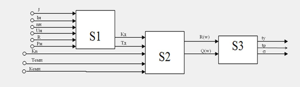 Вхідними є: - коефіцієнт перетворення ДПС; - постійна часу ДПС; - коефіцієнт підсилення; - постійна часу електромашинного підсилювача; - коефіцієнт перетворення електромашинного підсилювача.