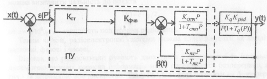 Без урахування тахогенератора ССП описується передаточною функцією розімкненої системи третього порядку