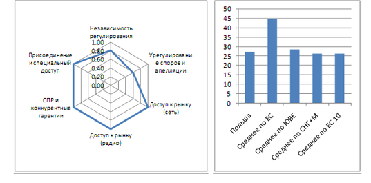 Несмотря на то, что Польша имеет уровень ―Полного соответствия, оценка была снижена в области независимости регулирования из-за слабых полномочий санкционирования и отсутствие бюджетного контроля. Также была снижена оценка за длительные апелляционные процедуры.
