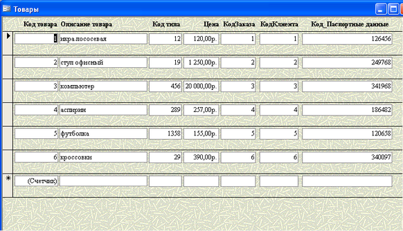 Формы “ЗАКАЗ”, “КЛИЕНТ”, “ТОВАРЫ ” представляют собой таблицы для работы с записями.
