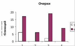 График соотношения тематики очерков (Приложение 5) дает представление о происшедших изменениях. В 1956-1958 годах количество очерков о пионерах и ровесниках, а также о природе и животных, значительно возросло. Очерки же о Родине и о жизни за рубежом вообще начали появляться только в этот период.