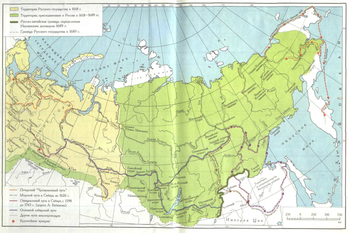 К концу XVII в. Сибирь стала составной частью Российского государства, хотя ее южные и восточные границы, за исключением небольшого участка по реке Аргунь, не были определены дипломатическими протоколами. На картах Российского государства появилась надпись — Азиатская Россия.