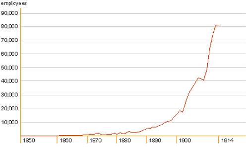 Компания быстро развивалась, выполняя крупные телеграфные проекты и расширяя деятельность в других направлениях. В 1887 г. товарищество Сименс и Гальске было преобразовано в акционерное общество, с основным капиталом в 35 милл. марок, который в 1898 г. был увеличен до 40 милл., а в 1899 г. - до 45 милл. марок.