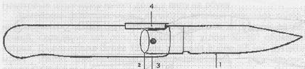 1 – клинок; 2 – хвостовик; 3 – поворотная ось; 4 – фиксатор.