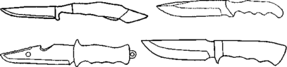 Рис. 3. Схемы наиболее распространенных типов охотничьих ножей