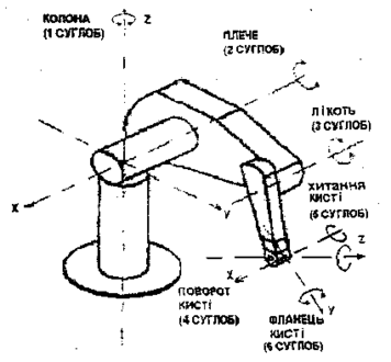 Манипулятор робота имеет шесть ступеней подвижности. Звенья манипулятора соединяются одна с одной с помощью суставов, которые имитируют локтевой или плечевой сустав человека. Каждое звено манипулятора приводится в действие индивидуальным электродвигателем постоянного тока через редуктор.