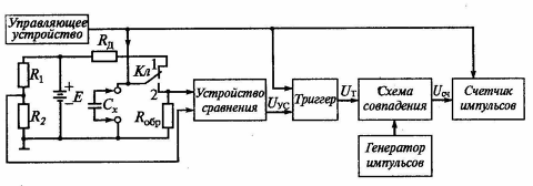 Согласно (49), величина измеряемой емкости прямо пропорциональна числу импульсов N, поступивших на счетчик.