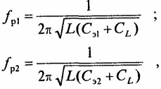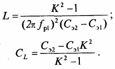 Пусть соотношение частот ƒp1 = KƒР2, где К — коэффициент — вещественное число. Тогда совместное решение уравнений (40), (41) дает возможность вычислить ранее неизвестные величины параметров L и CL: