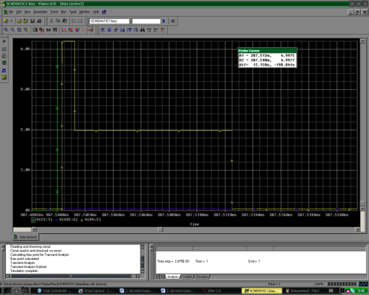 Моделирование режимов, заданных в профиле начинается после выбора в меню PSpice команды Run или нажатию кнопки F11.