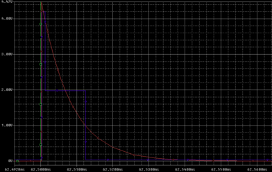 На рисунке 6 снизу виден один из коротких выходных импульсов. Установив маркеры на фронт и спад импульса можно измерить его длину. В окне Probe Cursor можно увидеть расстояние между этими двумя маркерами – dif = 12,15 мкс.