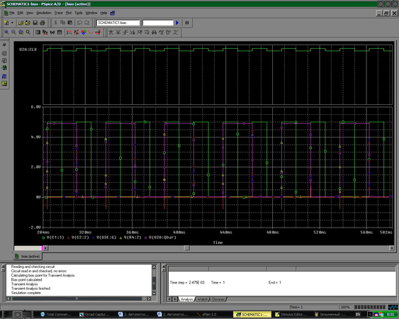 Рис. 5 – Окно PSpice A/D с отображенными диаграммами работы схемы.