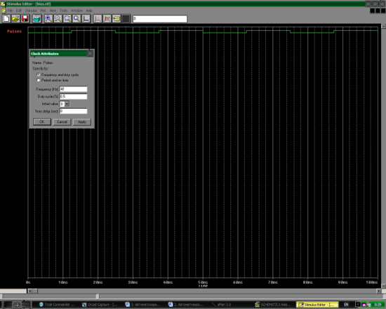 После создания профиля производиться задание вида входных сигналов из контекстного меню источников сигнала. При моделировании возможно создание сигналов «0», «1», прямоугольных, синусоидальных и других сигналов определённой частоты и длительности. Задание сигналов производиться в окне Stimulus Editor.