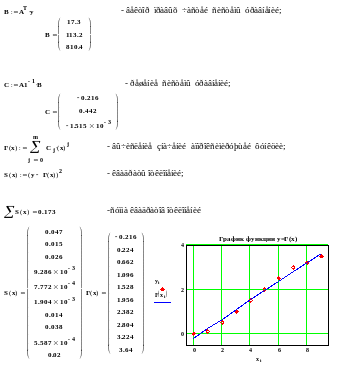 Сравнивая суммы квадратов отклонений видно, что полином второго порядка лишь немногим точнее описывает поведение объекта, чем полином первого порядка. Из чего следует, что поведение объекта подчиняется уравнению очень близкому уравнению линии. Для расчетов используем уравнение найденное с помощью полинома второго порядка.