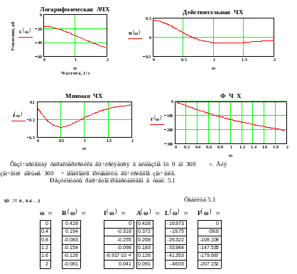 Ниже приведен расчет частотных характеристик объекта на ЭВМ в системе MathCAD . Расчет произведен в диапазоне частот 0...2 c-1 для 100 точек. Также представлены графики при