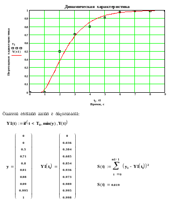 Подставляя соответствующие значения к, р, t, τ получим график переходного процесса в объекте.