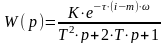 Передаточная характеристика объекта второго порядка с запаздыванием отличается от характеристики первого порядка наличием в знаменателе дроби квадрата суммы:
