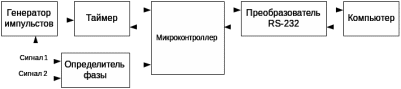Исходя из того, что данные измерений следует передавать в компьютер через COM-порт, то фазометр будет содержать микроконтроллер, так как с помощью него наиболее просто реализовать связь с компьютером по интерфейсу RS-232.