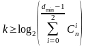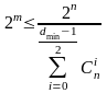 Верхняя граница Хемминга устанавливает максимально возможное число разрешённых кодовых комбинаций (2m) любого помехоустойчивого кода при заданных значениях n и dmin: