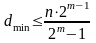 Приведенное утверждение справедливо и для больших dmin, хотя точных соотношений для связей между m и n нет. Существуют только верхние и нижние оценки, которые устанавливают связь между максимально возможным минимальным расстоянием корректирующего кода и его избыточностью.