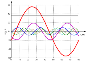 Рис 5.1 7 первых гармоники напряжения на входе.