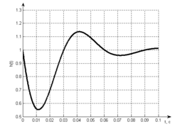 подаче на вход единичного ступенчатого воздействия (t), и нулевых начальных условиях.