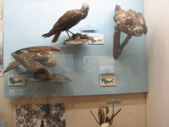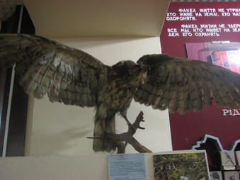Група хижих птахів в експозиції представлена шулікою чорним, лунем болотяним і скопою.