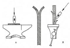 | Рис. 3 Разрубка: 1 — на наковальне; 2 — в тисках | ||