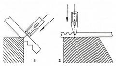 | Рис. 2 Протяжка: 1 — на ребре; 2 — скругленным молотком | ||