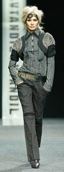| мех | Полоска, горох | машинная обработка | Декоративные пуговицы, пояс. Линии: вертикальные | Отделка на воротнике блузки и на брюках (заплатки, на коленках) | Серебристые пуговицы, тканевый ремень | ||||||||||||||||||