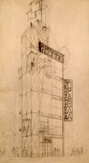 Архитектурная деятельность Лисицкого (представителя супрематизма), подготовленная серией экспериментальных проектов "Проуны" ("Проекты утверждения нового"; 1919-1924), заключалась в решении проблем вертикального зонирования городской застройки (проекты "горизонтальных небоскрёбов" для Москвы, 1923-1925), в активном участии в работе объединения "Аснова" и ряде архитектурных конкурсов 20-х гг. (проекты: Дома текстилей, 1925, и комбината газеты "Правда", 1930, для Москвы; жилых комплексов для Иваново-Вознесенска, 1926). Лисицкий выполнил в духе супрематизма ряд агитационных плакатов ("Клином красным бей белых!", 1920, и др. (приложение 6)), разрабатывал проекты трансформируемой и встроенной мебели (1928-29), утверждал новые принципы выставочной экспозиции, понимая её как единый организм (советские павильоны на зарубежных выставках 1925-34; Всесоюзная полиграфическая выставка в Москве, 1927), и решения сценического пространства (работы для театра).
