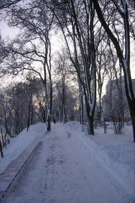 На рис. 16 изображен зимний парк. Цель − воспроизвести фактуру снега среди деревьев. Фотосъемка проводилась на открытом воздухе в дневное время. Данная фотография сделана на фотоаппарате Canon 450D. Для уменьшения бликов на снегу использовался поляризационный светофильтр. Для создания правильной композиции снимка, я решил на переднем плане разместить дорогу, на заднем расположить много заснеженных деревьев. В отличие от предыдущей фотографии этот снимок имеет светлую тональность. Для передачи фактуры снега я использовал заднедиагональное освещение, благодаря чему на фотографии снег имеет хорошую проработку.