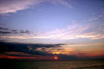 Заход солнца с большой водной поверхностью можно сделать красочным. Спокойное море будет отражать небо, образуя зеркальное отражение; рябь на поверхности воды будет разбивать это отражение, сохраняя теплое сияние воды и прокладывая световую дорожку от горизонта до переднего плана. Закат наиболее лучше снимать с более высокой точки. Этому может служить вершина прибрежной скалы либо пирс.