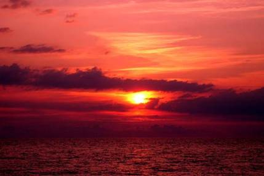 Лучшие времена для фотосъемки морского пейзажа при закате солнца − лето. В этот период больше облаков, которые усиливают выразительность сюжета. Облака воспринимают красное свечение солнца, дополняя картину постоянно изменяющейся световой палитрой. Очень часто, когда солнце находится за облаками, его лучи светят во все стороны, создавая особенно впечатляющую картину.