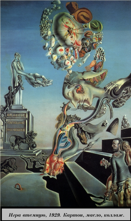Самыми часто появлявшимся в картинах Дали образами были отец и Лорка, соответственно, это были фигура постоянного преследователя и силуэт головы. И с этими двумя людьми Сальвадора связывали очень крепкие узы жизни, многие ситуации схожести и противоречия, ссоры и затем наступающий мир постоянно происходили в их миру – один создавал и делал, другой оценивал и заносил в историю, третий советовал и решал. И нельзя точно сказать, к кому все перечисленное относилось, ведь они хорошо знали друг друга и каждый мог сделать в разный период все или что-то одно из перечисленного. И цель курсовой была как раз разобраться в отношениях Сальвадора с отцом и Лоркой, разъяснить некоторые неизвестные или непонятые места в их истории, а также подробно разъяснить смысл некоторых, наиболее популярных картин.