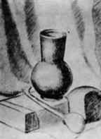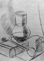 Натюрморт с натуры позволяет полнее раскрыть основные положения реалистического рисунка, заострить особое внимание на особенностях перспективы, глубже усвоить принципы линейно-конструктивного изображения формы.