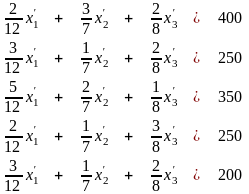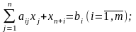 Число ограничений задачи, приводящих к уравнениям (2.2) можно уменьшить, если перед приведением исходной задачи (2.4) - (2.6) к канонической форме мы преобразуем неравенства (2.6) к виду (2.3). Для этого перенесем свободные члены правых частей неравенств (2.6) в левые части. Таким образом, от старых переменных