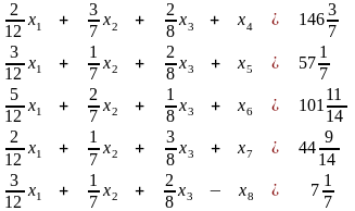(вместо пяти) обусловлено тем, что исходная задача уже содержит четыре единичных вектора условий А4, А5, А6, А7.