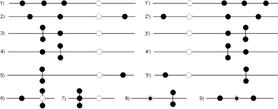 возможно 10 "грубых" случаев (рис. 3, 1)-5) и 1')-5')) и ряд "вырожденных" (рис. 3, 6)-9)), когда вещественная часть одного из корней равна нулю или вещественной части не сопряженного с ним корня. Случаи кратных корней здесь не рассматриваются.