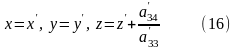 a´11х´2 + а´22у´2 + a´33z´2 + 2а´14 x´ + 2а´24у´+2а´34z´ +а´44 = 0 (7)